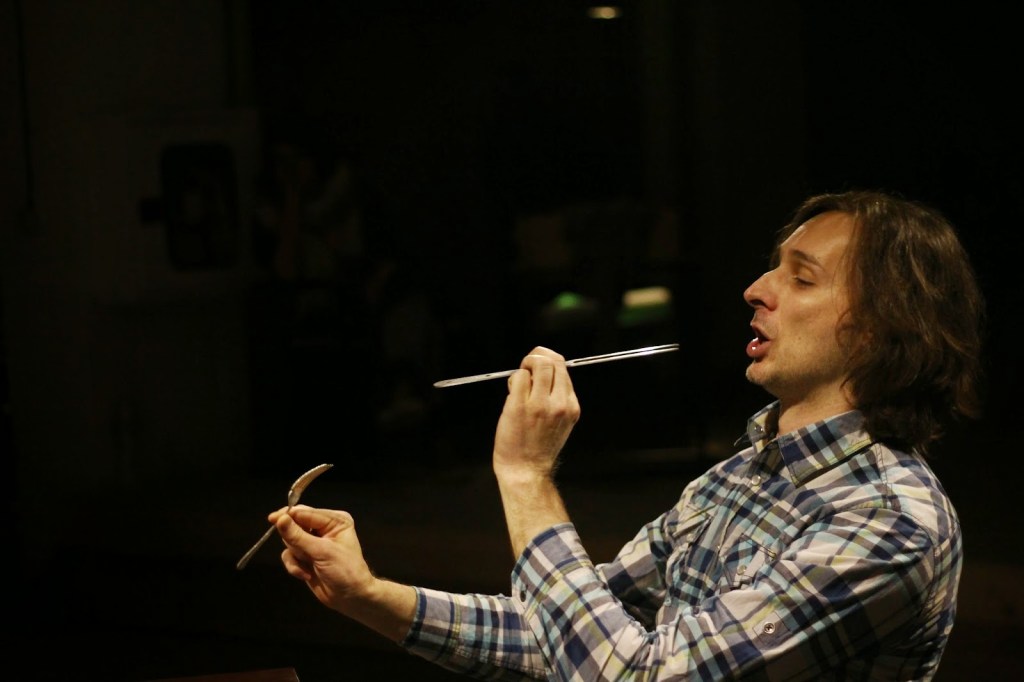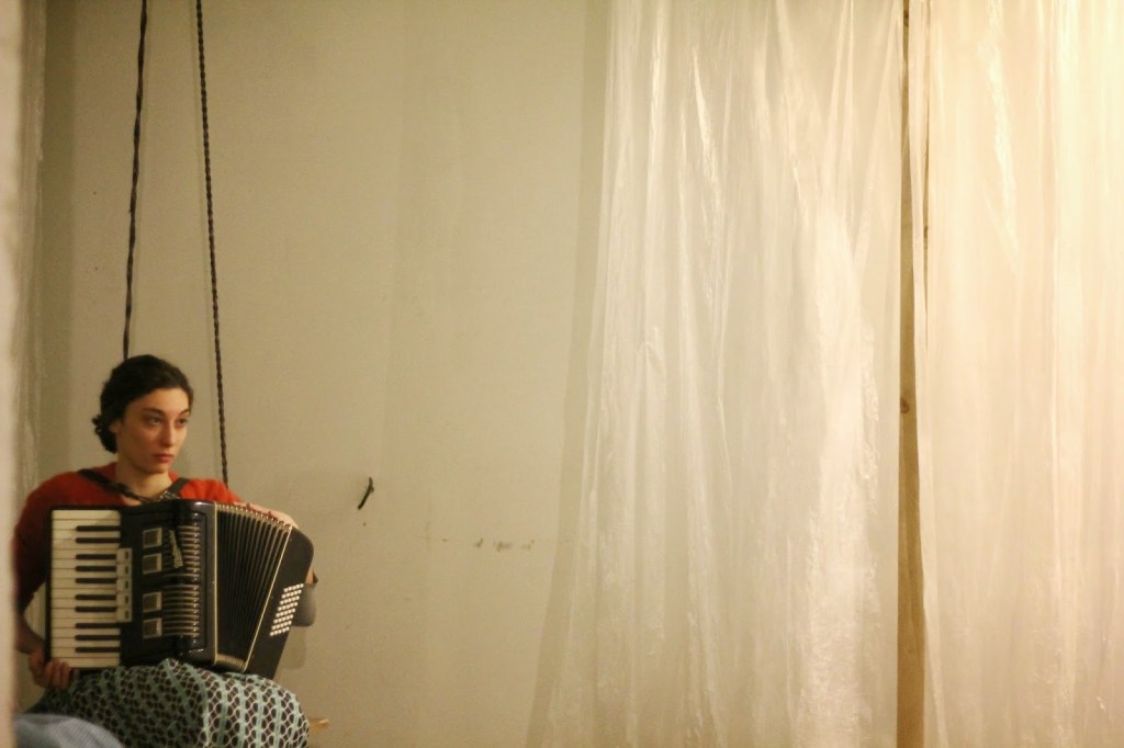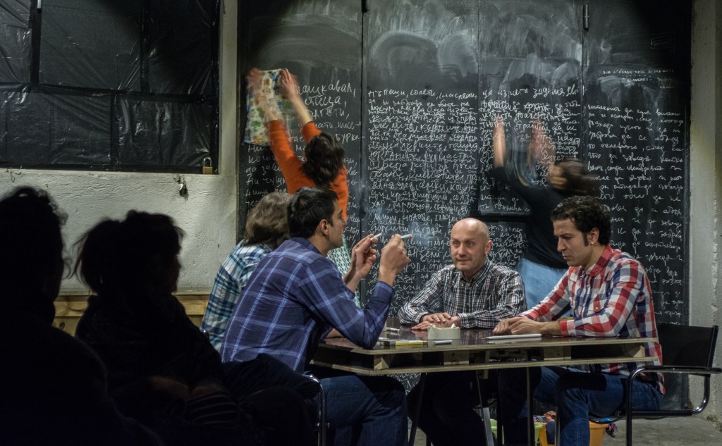 The performance “Ingtime” is initiated, produced and directed by Ida Daniel. It has the form of a research-collaboration on perceiving time and space based on a new Bulgarian text for stage by poet Radoslav Chichev with new-music composers Alexander Daniel and Todor Stoyanov, architects Don’tDIY, architecture-students and performers – Elena Dimotrova, Marieta Petrova, Mira Zahova, Julian Petrov, Mariy Rosen, Alexander Mitrev and Peter Meltev. It was performed in a non-theatrical space in Sofia – Studio ProJectirane. It took place in February 2015 for 10 days in a row. The performance was invited to two festivals outside of Sofia – Tara-ra-Bumbia, Blagoevgrad and Festival for New Bulgarian Dramaturgy, Shumen. To be able to perform it there we had to find and adapt new to us non-theatrical spaces. We were very happy with this challenge.