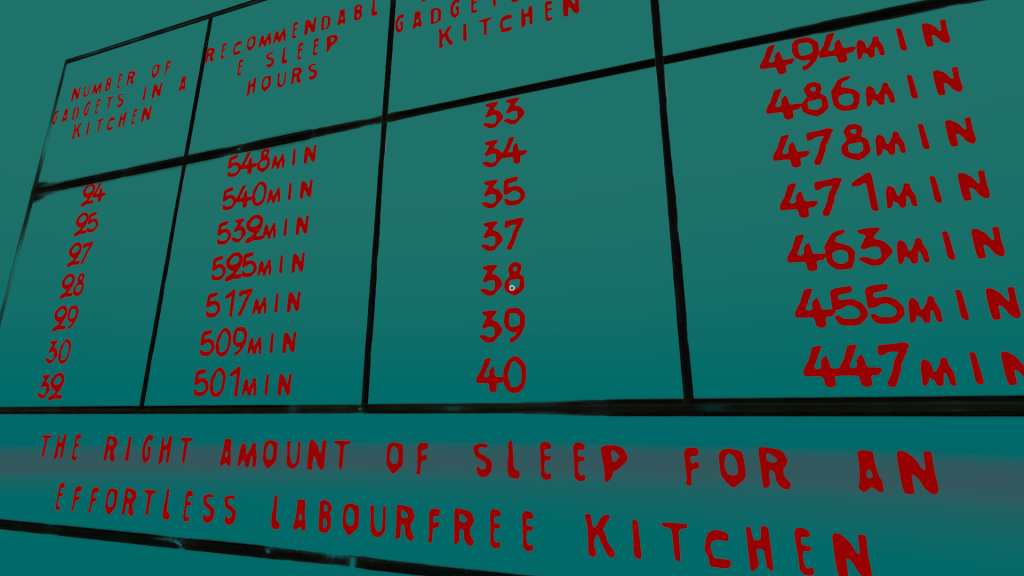 Kitchen-ing Questions is a virtual performance that aims at grasping the point of convergence between functionality, feminism and lockdown. Inspired by the iconic Frankfurt kitchen of the architect Margarete Schütte-Lihotzky, the performance is using the space of the kitchen as a reference point to look into the recently sharpened sensitivity for the blurred boundaries between working and leisure time. As the lockdown made the time of staying in the kitchen feel forever, we wanted to stay exactly there: overproducing, overcrowding, taking time, imagining, resting, choreographing. The audience is invited into the virtual state//ment of the performance to explore certain spatial conditions and the resulting functionality of movement. In this process, the spectators themselves become part of the performance: they are opening and closing doors, confusing private and public space, overhearing conversations, navigating through the virtual space and with that having their imagination triggered for the future of their own, as well as other people’s, kitchens.