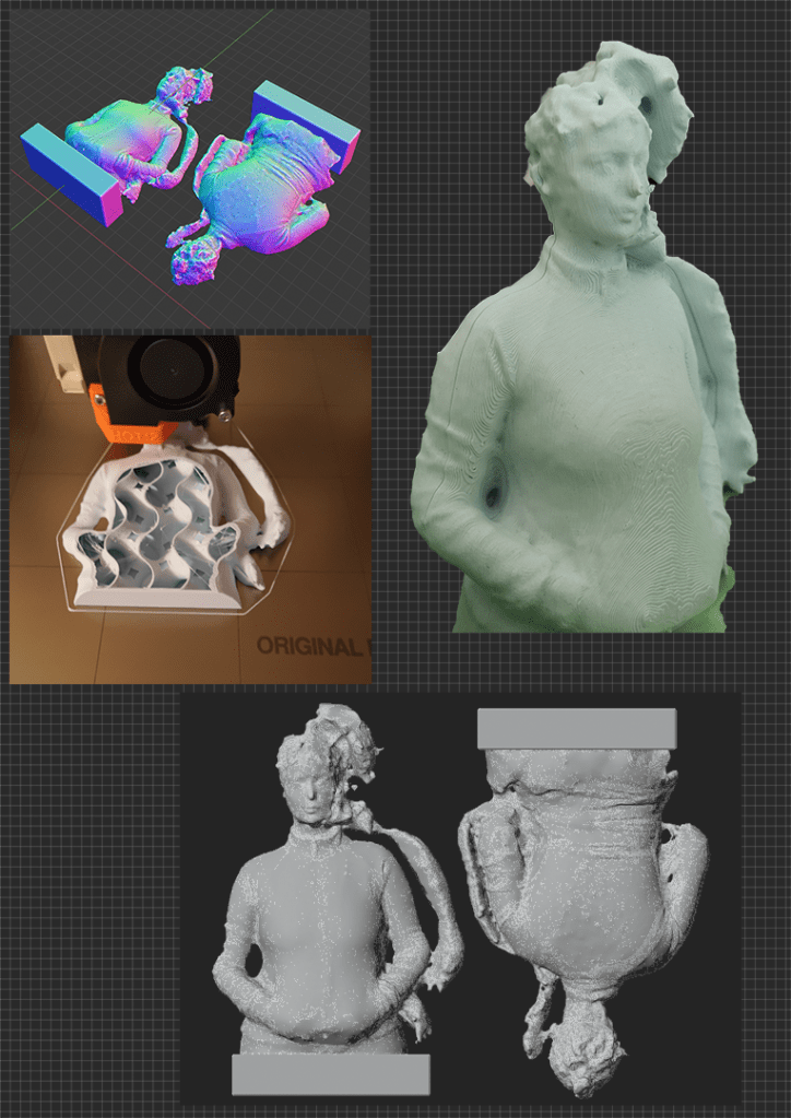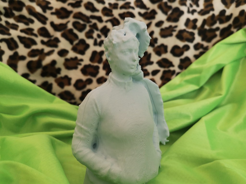 Materials: a 3D Printed miniature bust, a mega-dimensional photo collage, 11 photos with poems, 4+16 photos with no titles, a solo performance