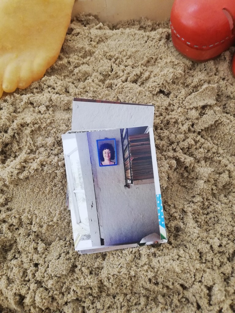 Materials: a table, some memories, some photos, a set of 60 image cards, instructional cards, two boxes of sand, three curtains, lights